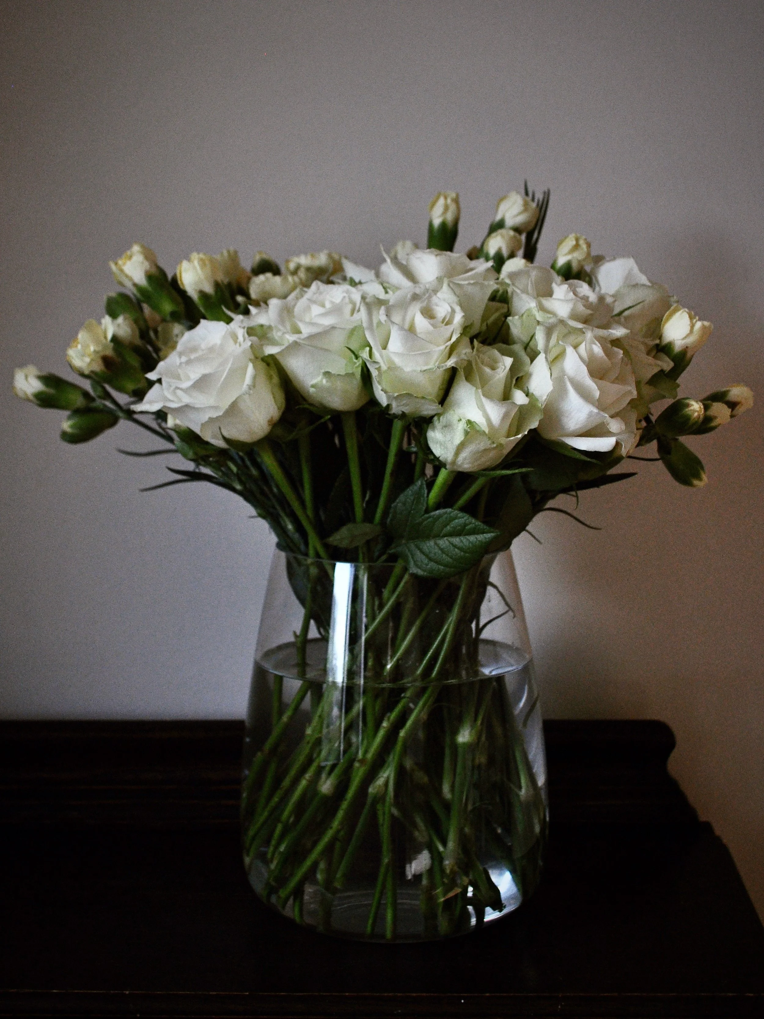 Chris brought me a bouquet of roses and carnations for our anniversary.