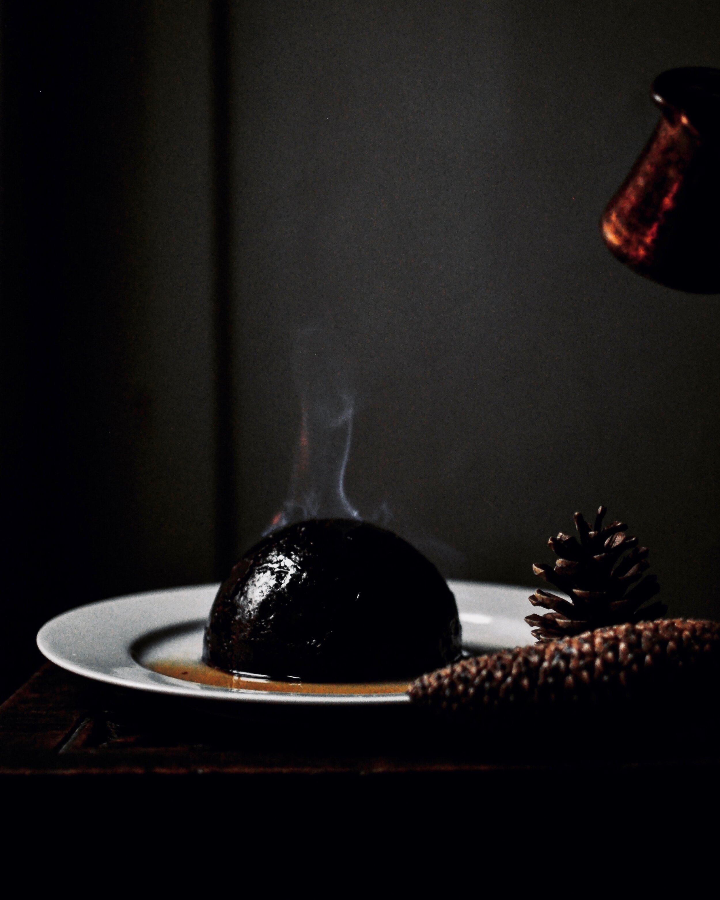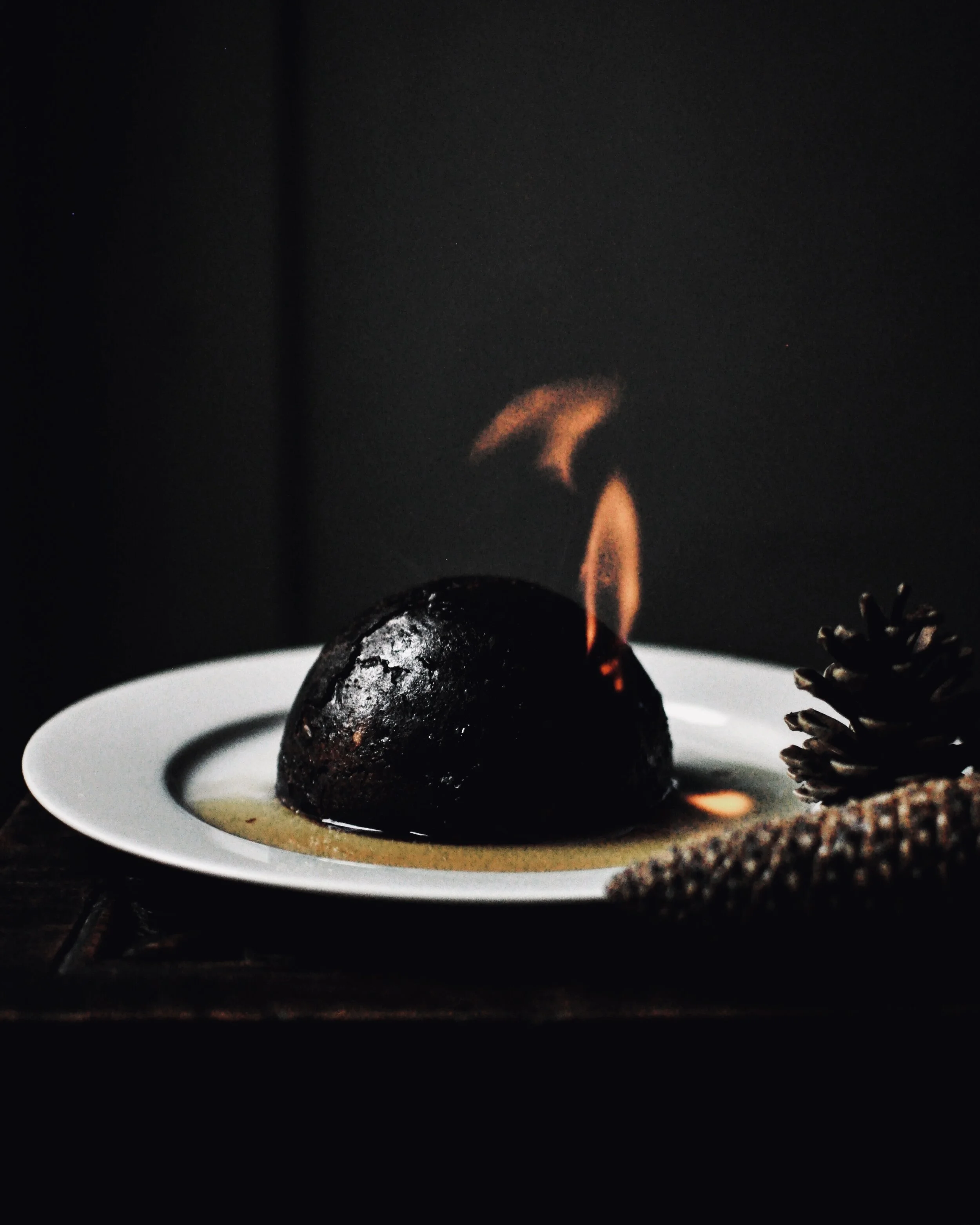 A Christmas comet has landed! The Lorient family, Antwn, Linda and Seren gave us a Harrods 12-month matured Decadent Christmas pudding made with cognac & brandy-soaked cherries. Absolutely yummy! We had quite a struggle to take these photos of the pudding with a flambé but I’m glad some were fine :) The slice is on our lovely friend, Robyn Cove’s beautiful plate.