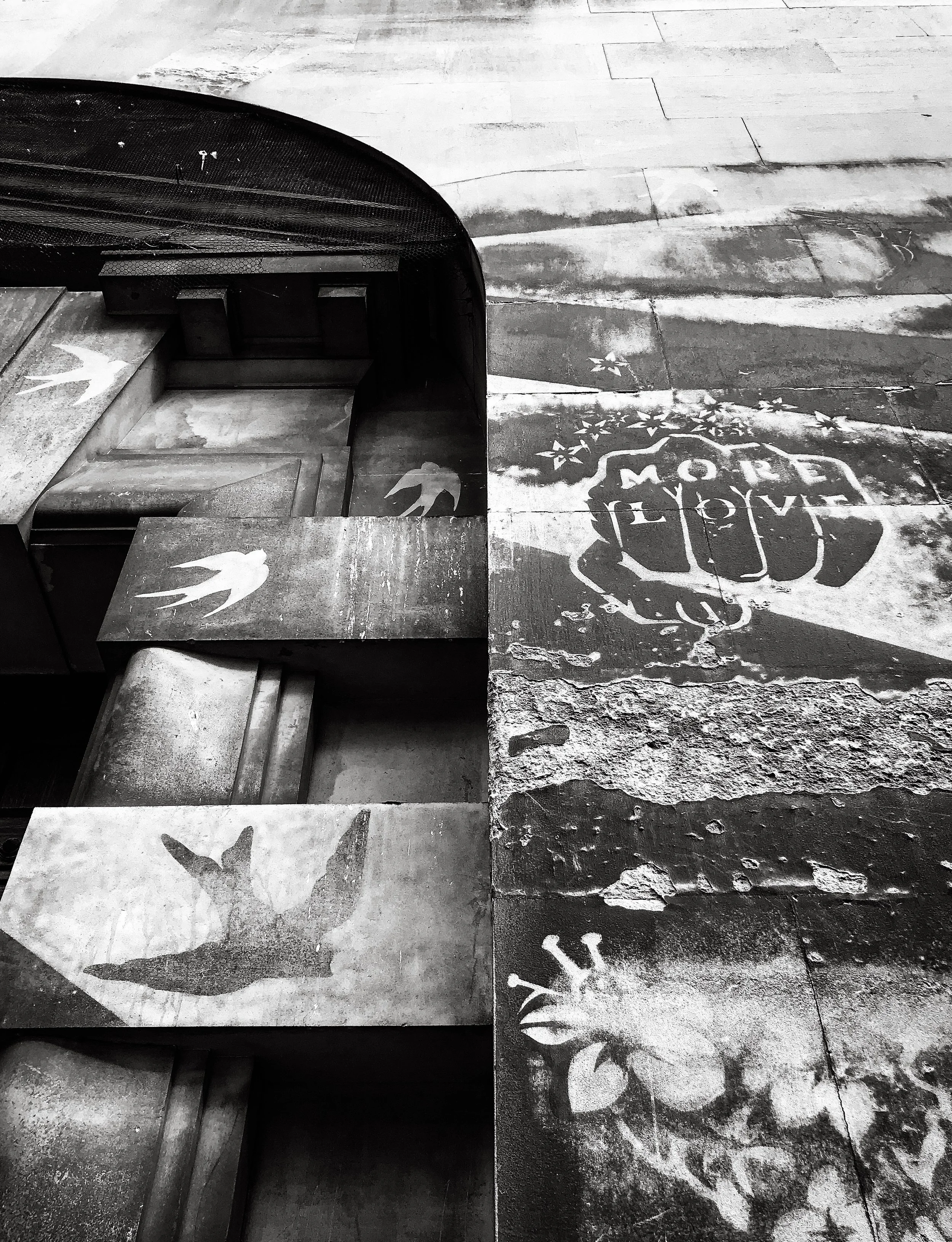 先月クリスと一緒にお隣イングランドのブリストルを訪ねました。カーディフからは車で一時間程。この街はステンシルスタイルの壁画が特徴の覆面ストリートアーチスト、バンクシーの街としても有名です。目的地へ向かう途中でも、偶然彼の作品を発見。