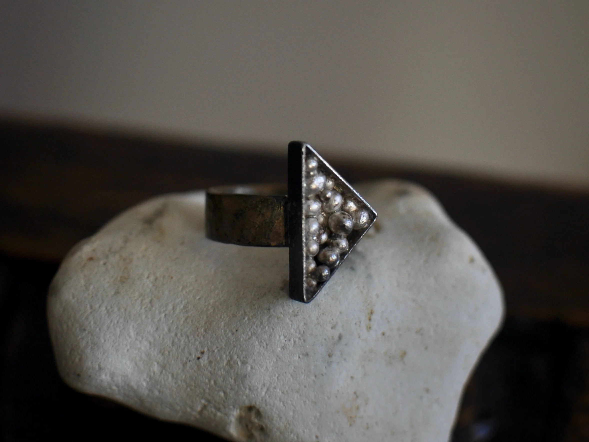 雪解け水が悠々と流れる春の川。生命の源である雨の粒をモチーフにしたリング。