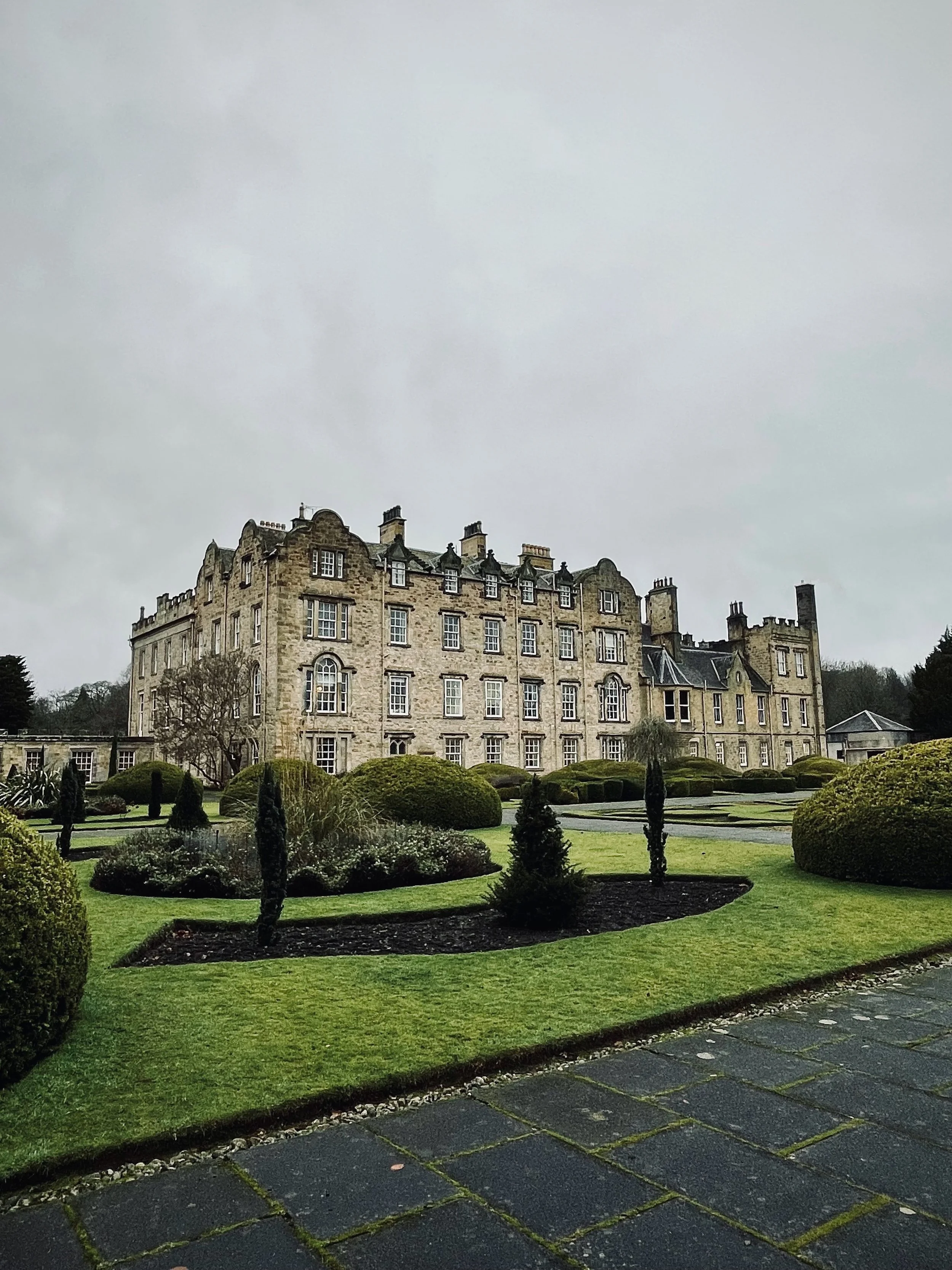 Newbattle Abbey's garden and Lord Ancrum’s Wood in the back