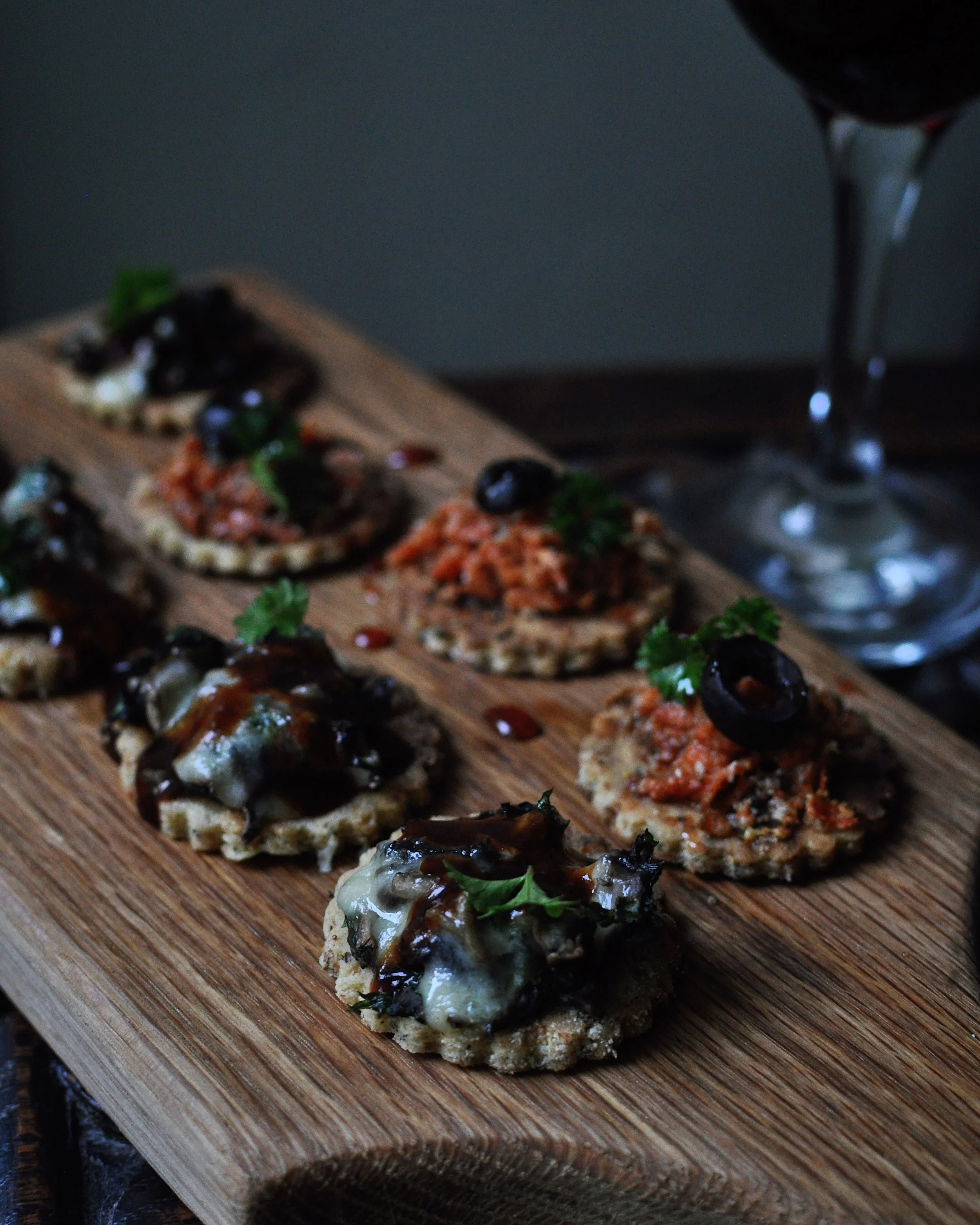 Today, I’m posting some photos of my experimental canapés. My partner Chris loathes any type of seafood, but somehow he bought a paella pan; so I decided to try some non-bake biscuits or canapés with the new pan.