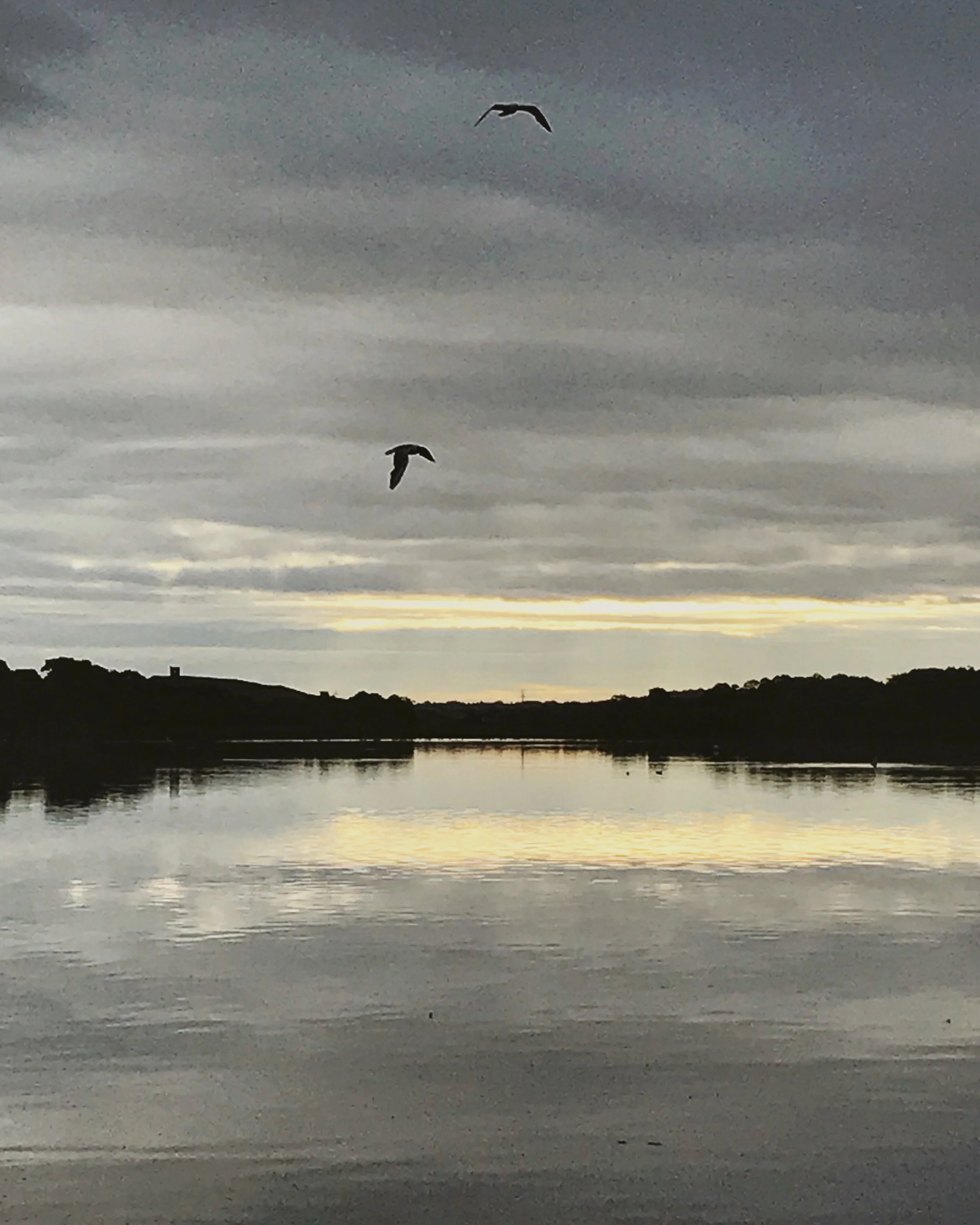 Blue skies and the golden reflection on the local river.