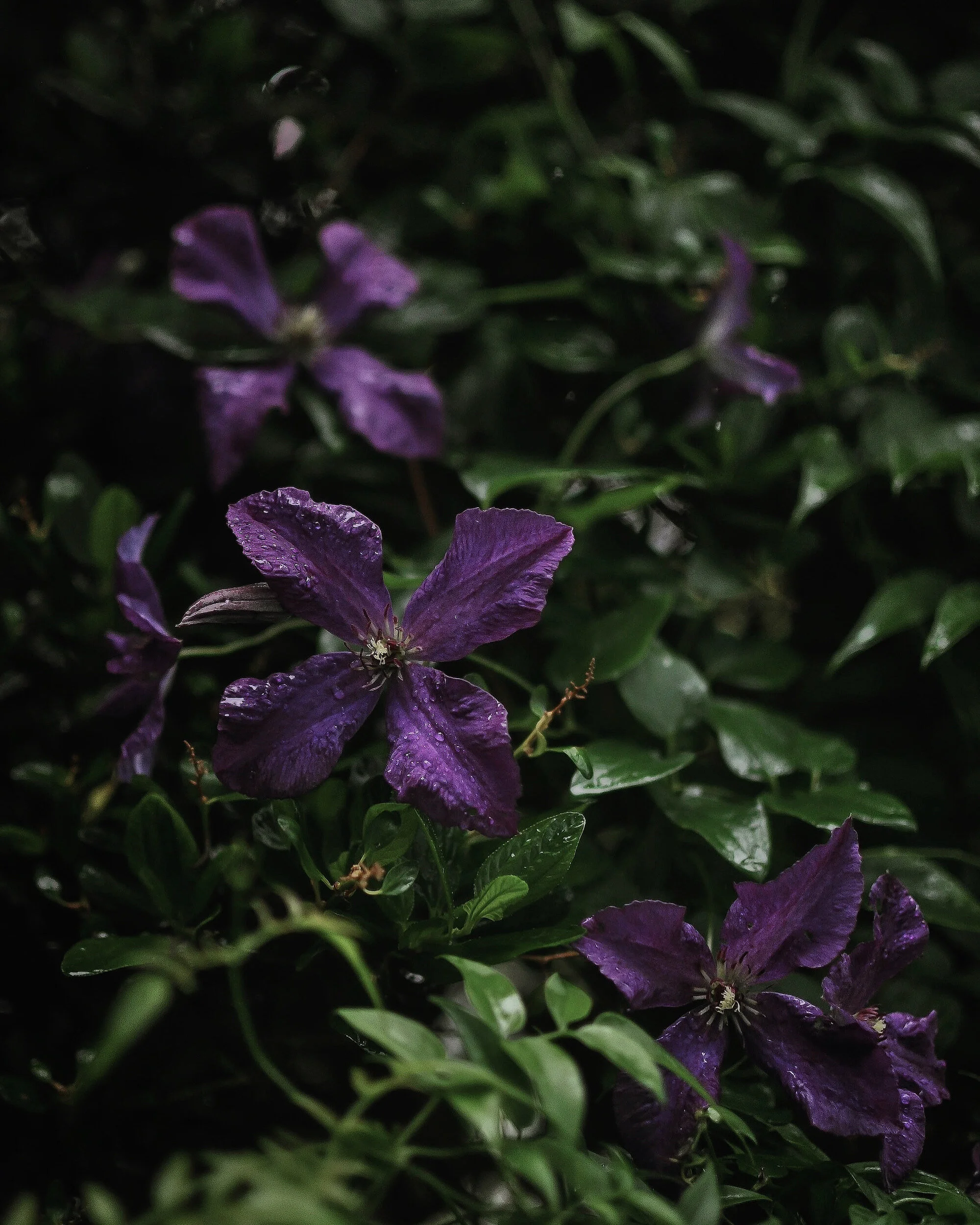 Clematis; I love white coloured flowers but I think this purple clematis is really lovely.